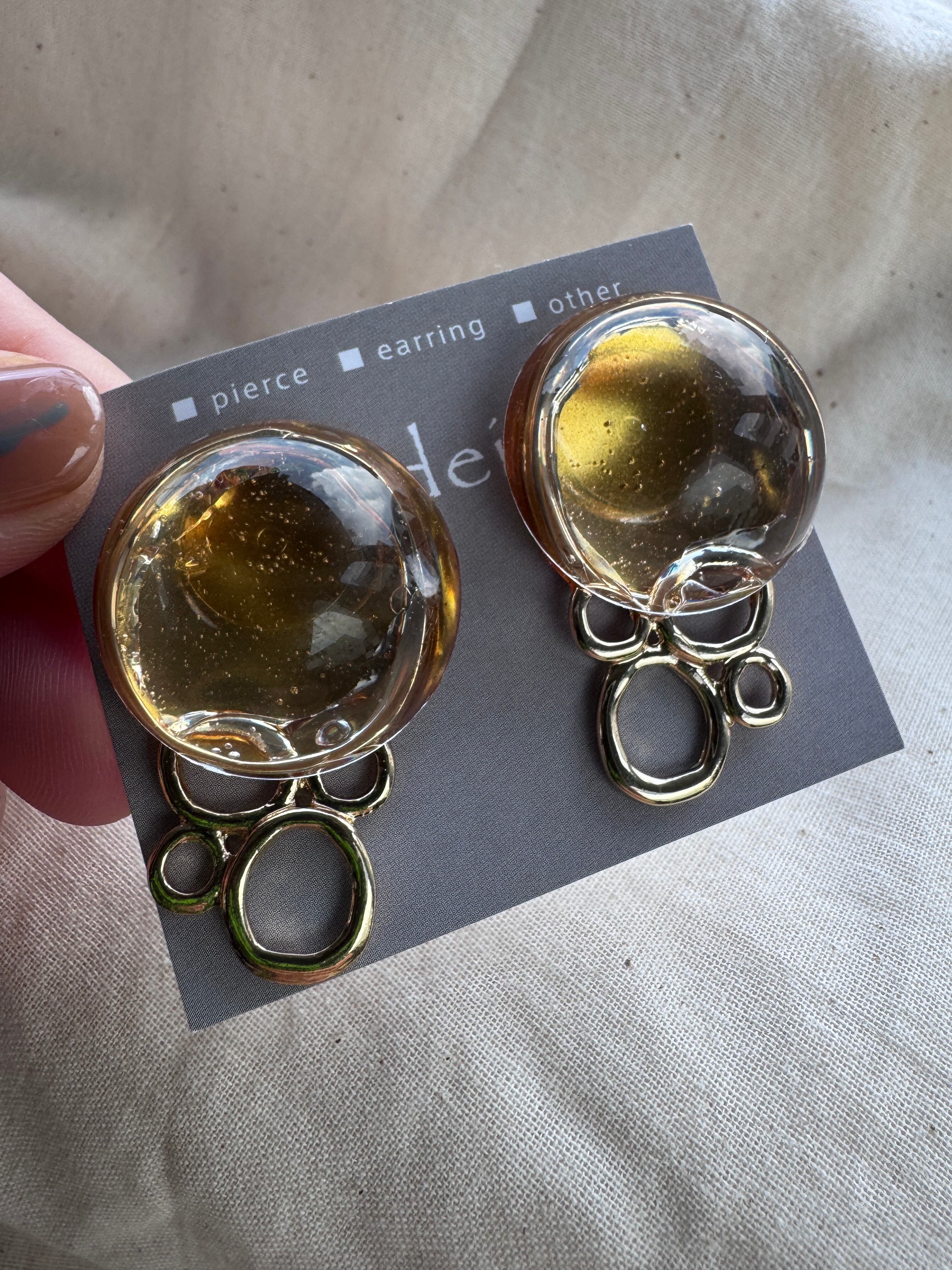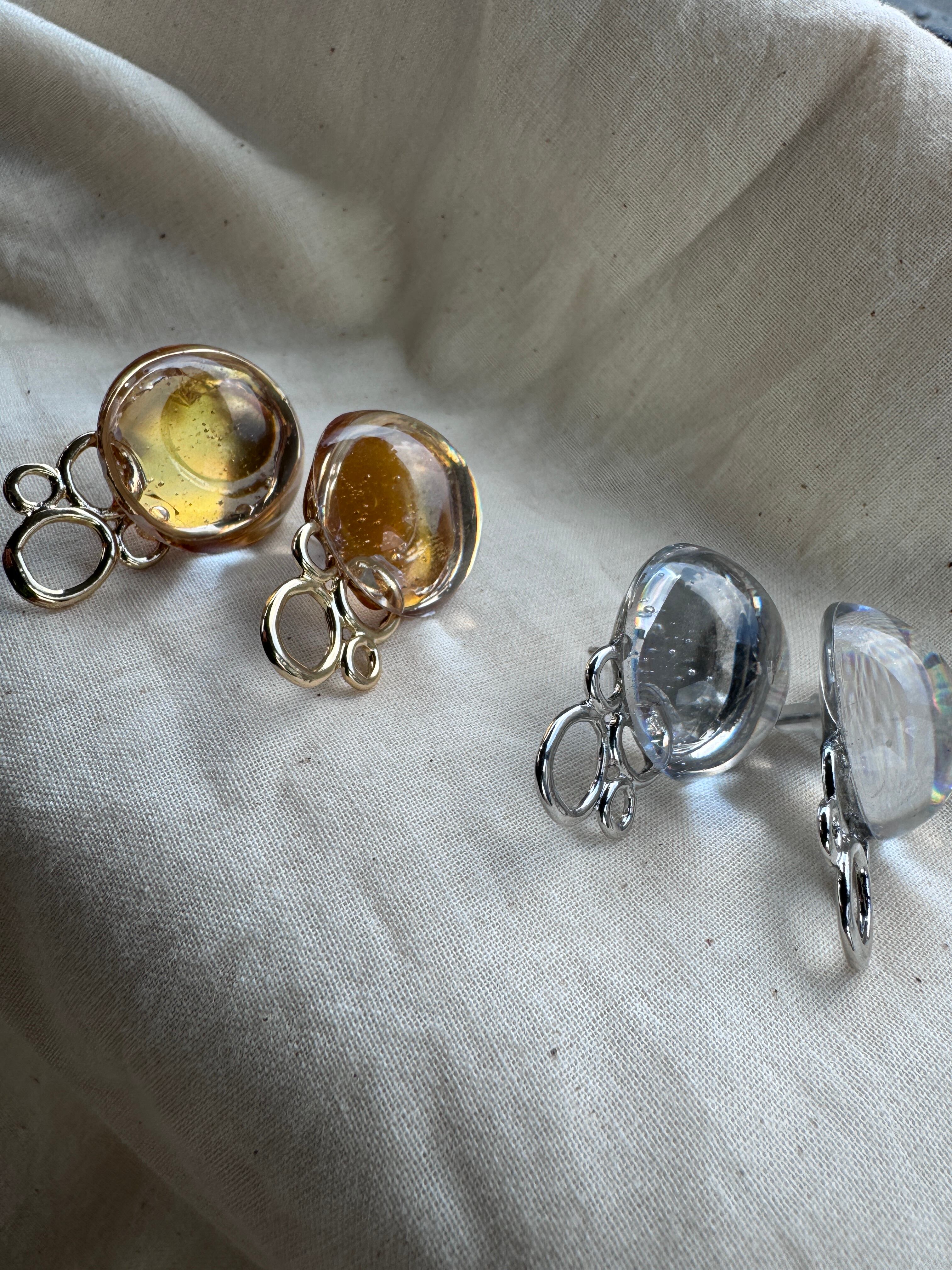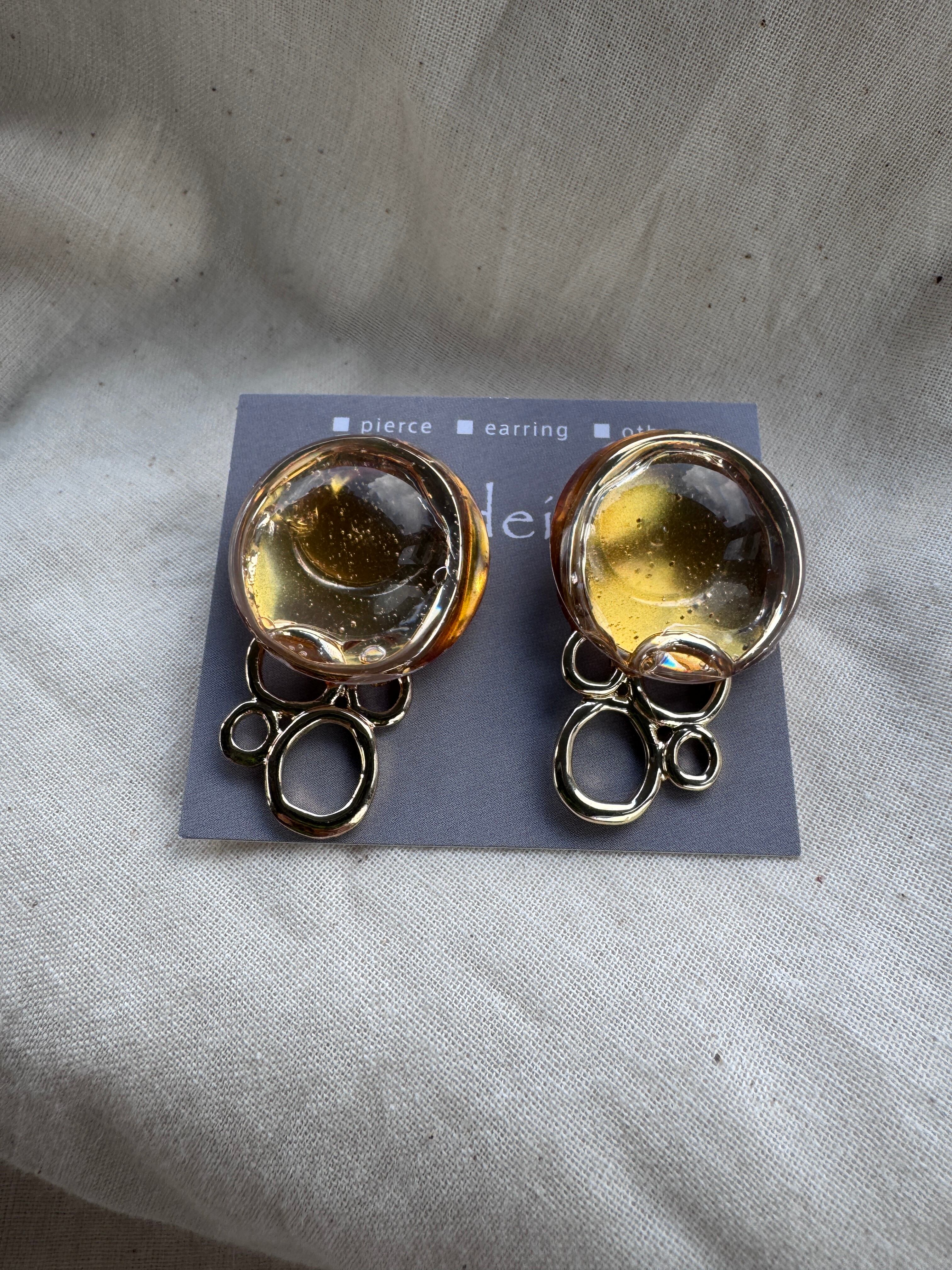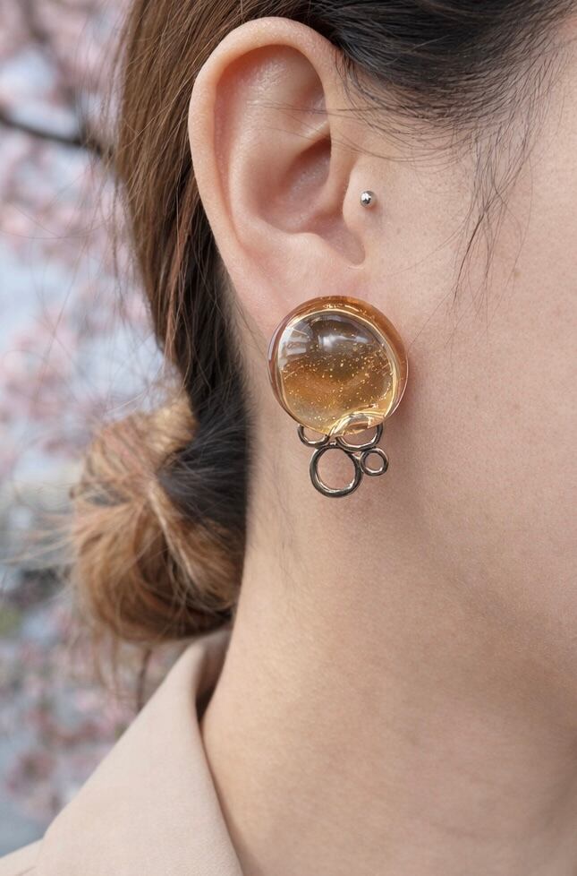 個性を引き立てる「Gold Orb」。豊かなゴールドが輝く丸いデザインのクリアなピアス・イヤリングは、日常のカジュアルスタイルから特別なシーンまで幅広く対応する魅力的なアイテムです。軽やかさとエレガンスを兼ね備えたその着け心地は、長時間の使用でも快適さを提供し、どんなコーディネートにも自然に馴染みます。